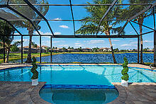 Welcome to this pristine & exquisitely crafted home offering an exceptional combination of space, custom finishes & the Naples lifestyle you’ve been dreaming of. Everyday feels like a vacation as you take a dip in the saltwater pool or dine al fresco in the screened lanai all while enjoying a sparkling lake view. A grand 2-story foyer welcomes you to formal living & dining spaces. The gourmet kitchen opens to a family room with wine bar...perfect for entertaining. Move right in & immediately enjoy living in paradise as this home has every feature you could possibly want. The 1st floor primary suite is a sanctuary with a fully remodeled spa-like bath including freestanding tub & incredible walk-in shower. Stay organized with finished closets, 3 stylish built-ins, a Murphy bed, custom laundry & garage storage. Additional features include fresh interior paint, plantation shutters, crown molding, designer lighting, finished garage floor and wood & tile flooring throughout. With 3,215 sf, 5 bedrooms & a loft this Merlot floor plan easily accommodates family & guests. Riverstone offers a social, vacation-inspired lifestyle with extensive amenities, activities director & A-rated schools.